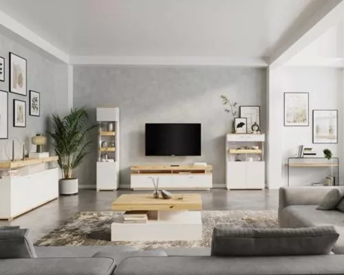 The CORSO fixed coffee table blends minimalist elegance with natural warmth. Its crisp white surface contrasts beautifully with oak accents, creating a Scandinavian-inspired aesthetic. Designed for everyday living, the sturdy build ensures durability, while its balanced proportions make it ideal for both compact apartments and open living spaces seeking modern sophistication and visual harmony.