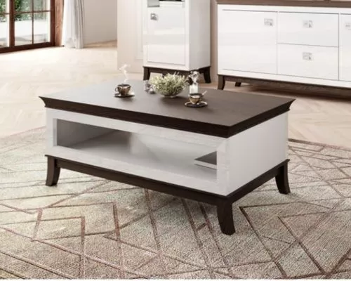 The MEUBLORAMA rectangular coffee table pairs sleek white finishes with dark oak accents for a chic, contemporary contrast. Measuring 65×120 cm, it offers ample surface space and a sophisticated design ideal for modern homes. Its clean geometry, smooth surfaces, and stylish palette add brightness and balance to any living room arrangement with effortless grace.