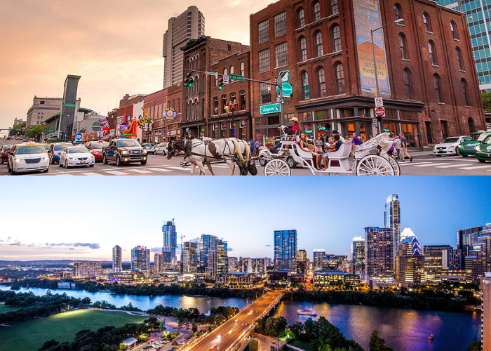 Travel between the live music capital of the world and country’s iconic hub, offering unforgettable cultural and musical experiences.